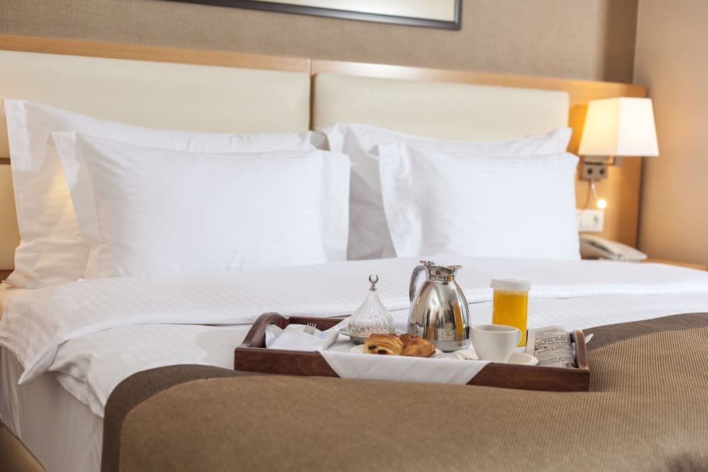 Zengin kahvaltı yetişkinler için yaklaşık olarak 17 EUR, çocuklar için 12 EUR ücret karşılığında servis edilmektedir Evcil haycan ücreti