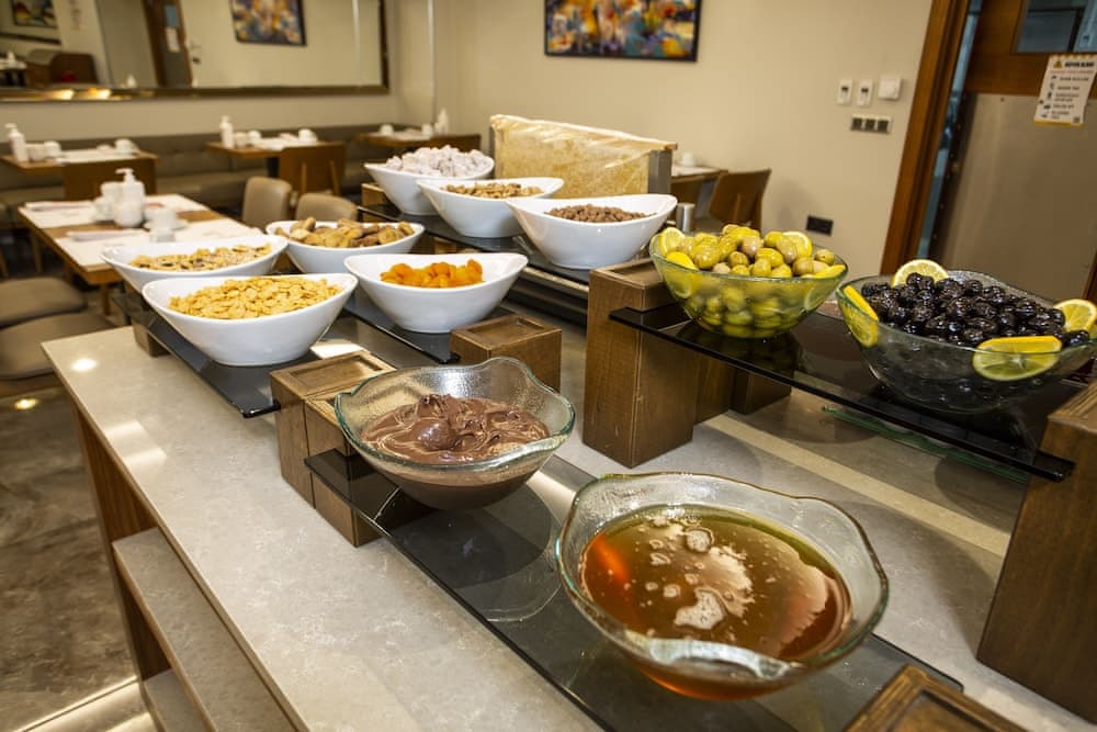 Açık büfe kahvaltı yetişkinler için yaklaşık olarak 15 EUR, çocuklar için 15 EUR ücret karşılığında servis edilmektedir Havaalanı gidiş geliş servisi ücreti