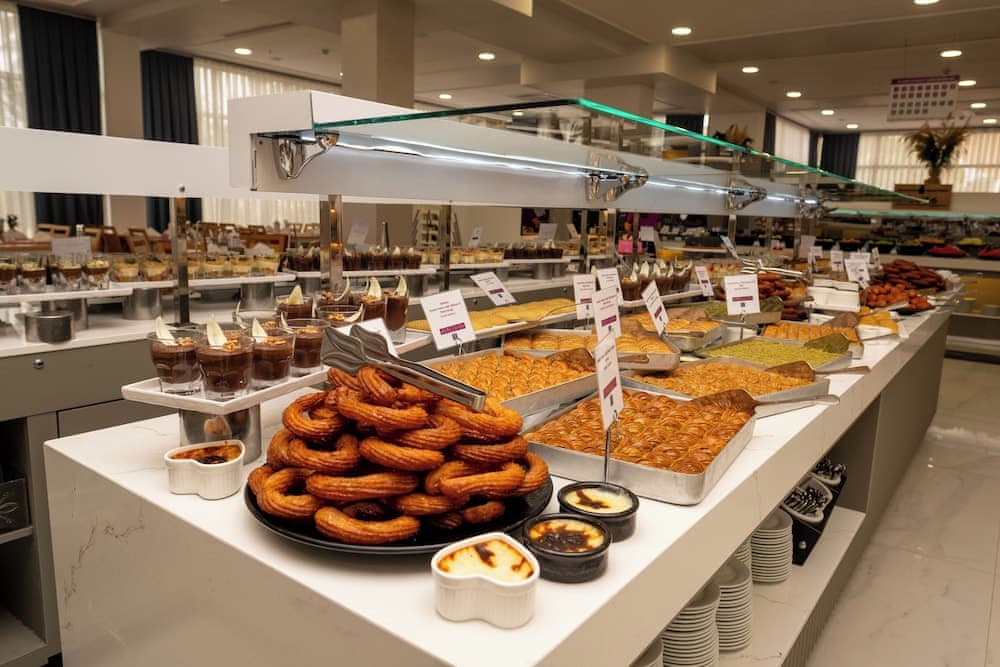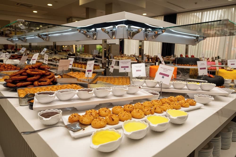 - 23:00-24:00 saatlerinde açık olduğunu lütfen unutmayın. Havuz atıştırma restoranı 11:00-16:00 saatleri arasında açıktır. Her şey dâhil içecekler 10:00-24:00 saatleri arasında temin edilebilir (bazı kısıtlamalar geçerli olabilir.)