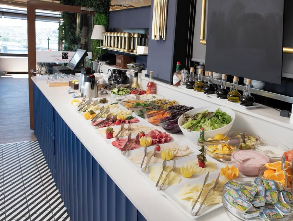 Açık büfe kahvaltı yetişkinler için yaklaşık olarak 15 EUR, çocuklar için 15 EUR ücret karşılığında servis edilmektedir Havaalanı gidiş geliş servisi ücreti