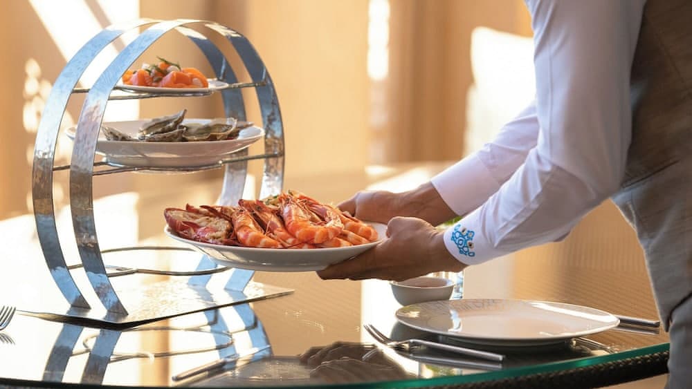 Zengin kahvaltı yetişkinler için yaklaşık olarak 165 AED, çocuklar için 83 AED ücret karşılığında servis edilmektedir Havaalanı gidiş geliş servisi ücreti