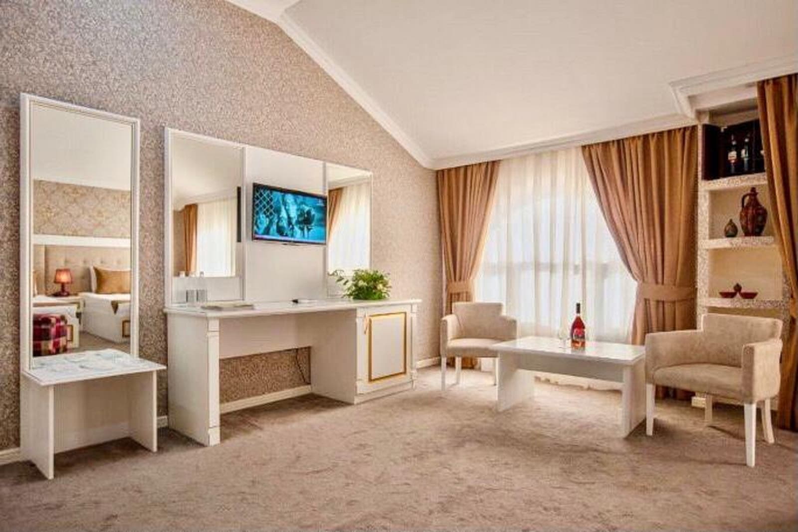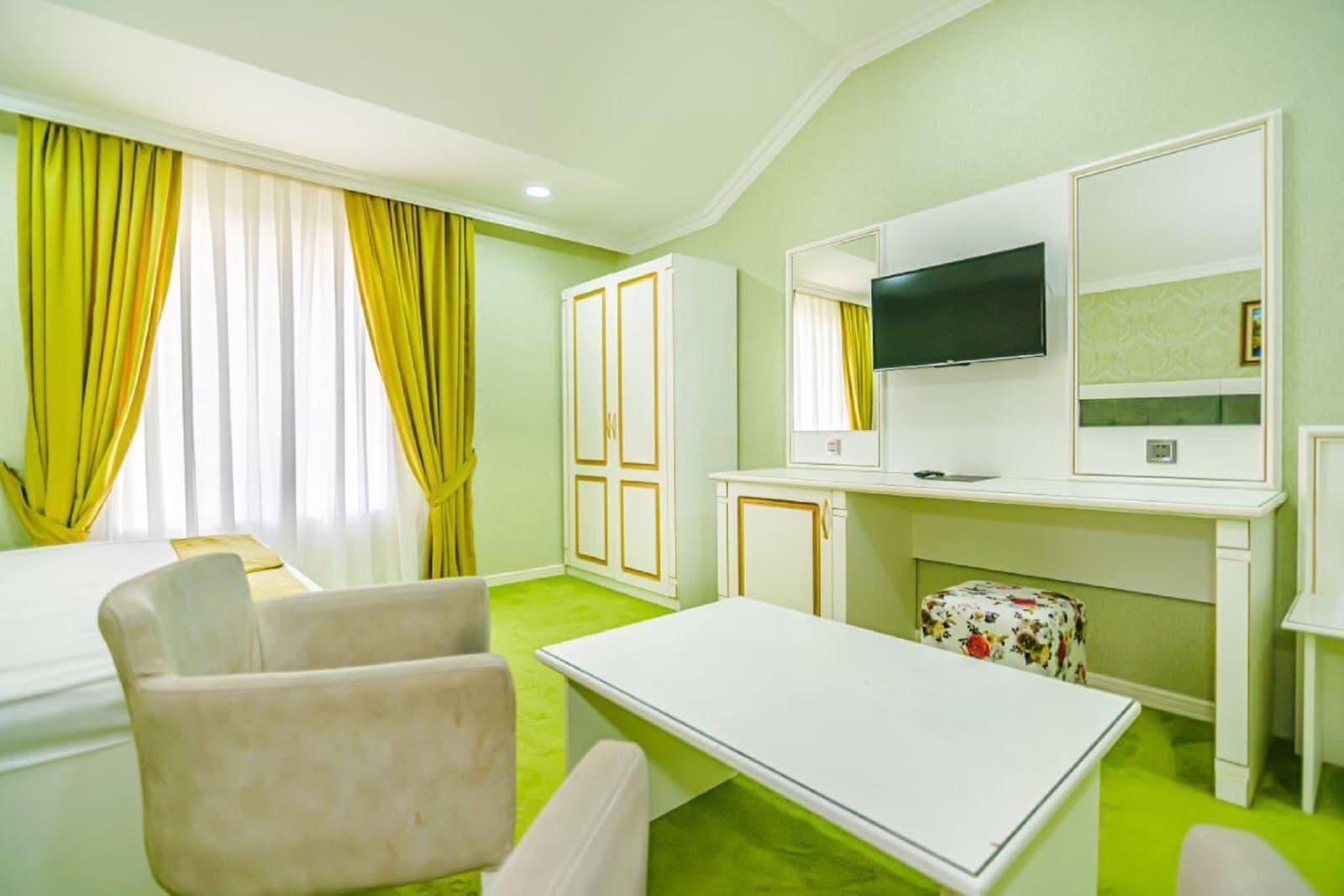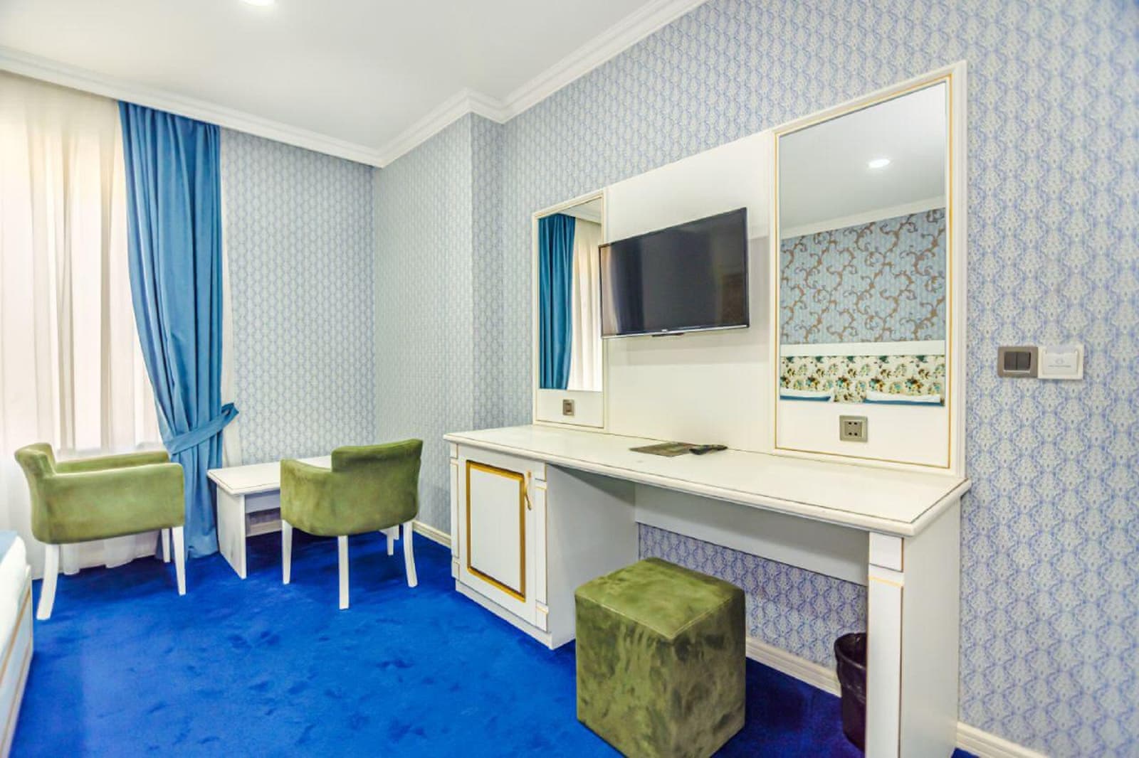 - ortak oturma alanı ve terası ile konaklama olanağı sunmaktadır. Bara sahip 4 yıldızlı otelin tüm odalarında klima