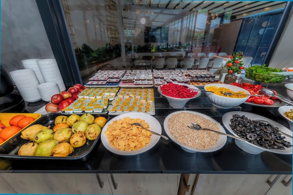 Açık büfe kahvaltı yetişkinler için yaklaşık olarak 15 EUR, çocuklar için 15 EUR ücret karşılığında servis edilmektedir Havaalanı gidiş geliş servisi ücreti