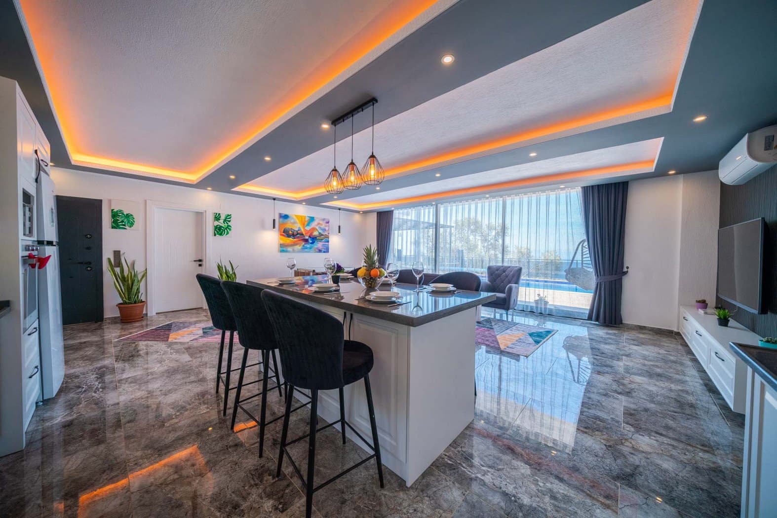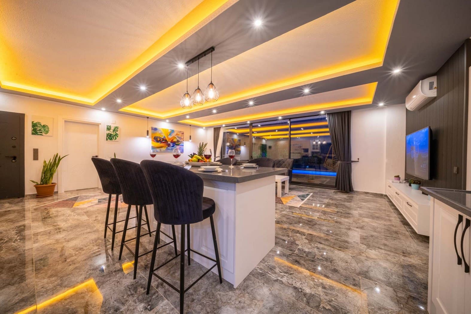 - Ortak salon/TV alanı